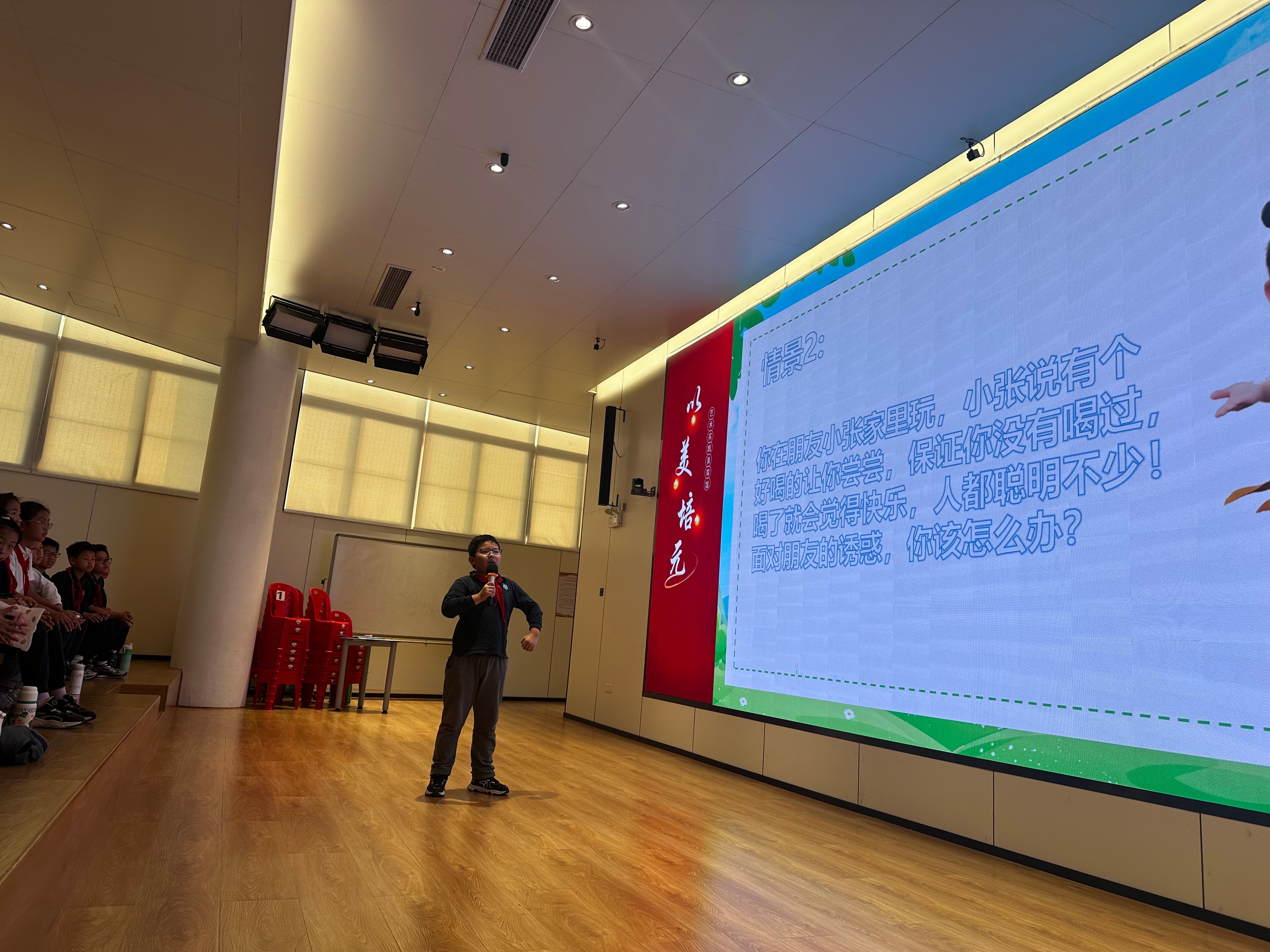 为了让同学们更深入地掌握禁毒知识,活动设置了有奖问答环节,同学们踊跃参与,禁毒社工通过情景模拟引导学生思考如何拒绝毒品,让学生们在思考和作答中掌握拒绝毒品的具体方法,进一步提升了学生们的拒毒防毒能力。