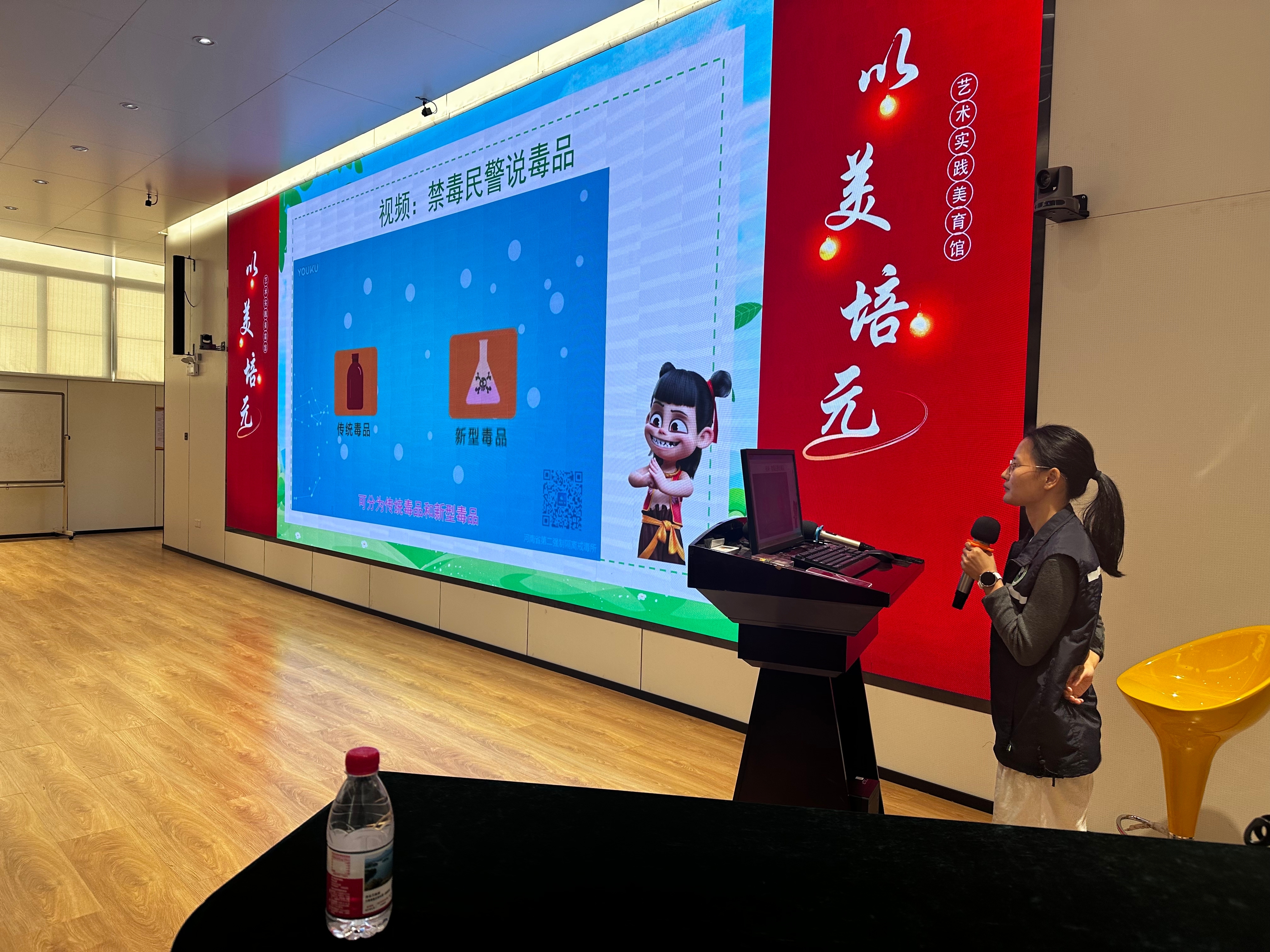 活动先以禁毒讲座的形式开展。禁毒社工通过课件与视频,为学生们明确了毒品的定义、危害,随后详细讲解了常见毒品的种类,既包括鸦片、海洛因等传统毒品,也重点讲解了伪装成“奶茶”“跳跳糖”等零食饮料的新型毒品,提醒学生们警惕毒品的隐蔽伪装,避免误入陷阱。